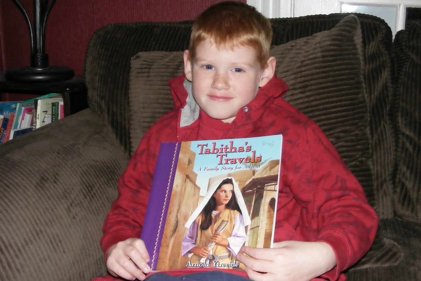 I apologize I am all over the place today so getting back to advent. We do all sorts of things to get ready we have an advent calendar and an advent wreath with the candles. I have all sorts of crafts and activities planned, but the one thing that we seem to love the most is a 3 book series by Arnold Ytreeide. Joshua is pictured here with Tabitha’s Travels the 3rd in the series. Sadly these books have been out of print for awhile. I am glad to tell you that the first 2 (Jothams Journey and Bartholmews Passage) are back in print. I have not come across a better series to take you through the advent season. There is a reading for each day and he always leaves you wanting more! If you can put your hand on a copy, they are wonderful. We are very excited as he has a new book for Easter which will hopefully be available early 2010!!