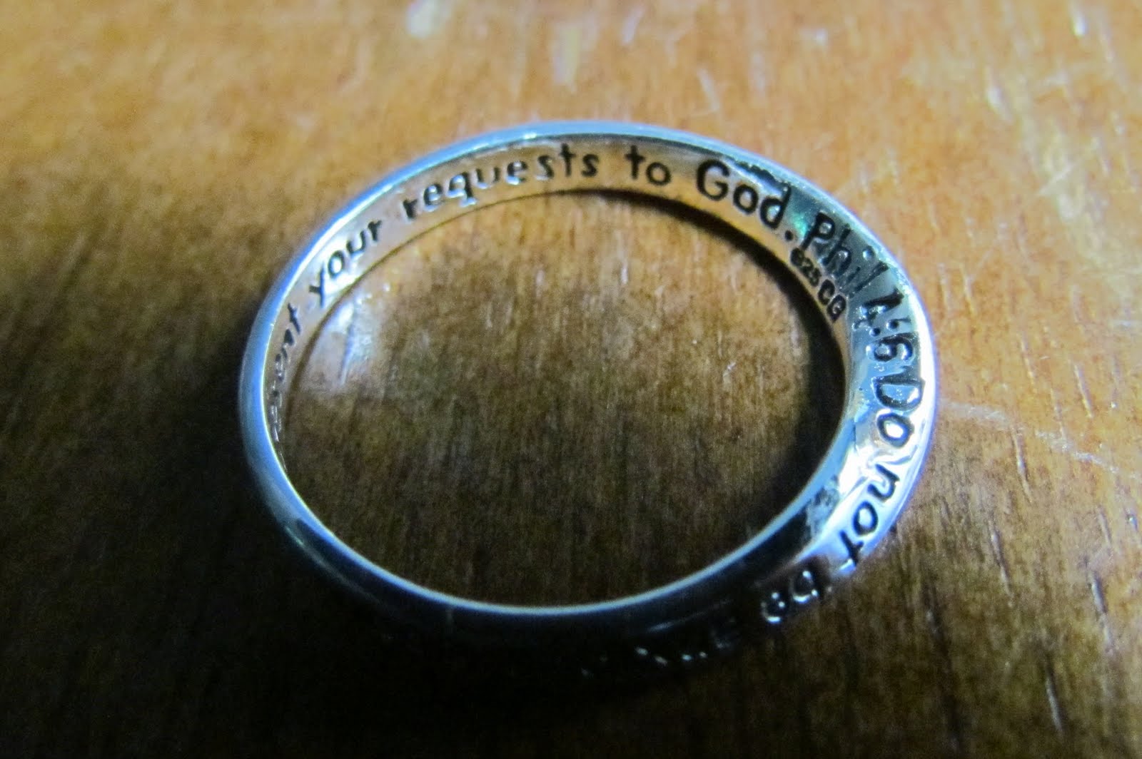 It has Philippians 4:6 on it, Philippians 4:6 has become a verse I seem to claim daily;