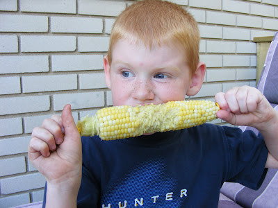 Finally the corn. Elijah looks like, “What why are you taking my picture can’t you see I am eating here.”
