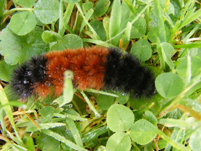 A little Woolly Bear was creeping along he has dew on him too!