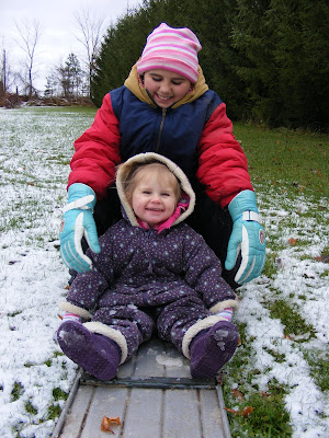 These funny girls pulled out a toboggan, (sled) too funny.