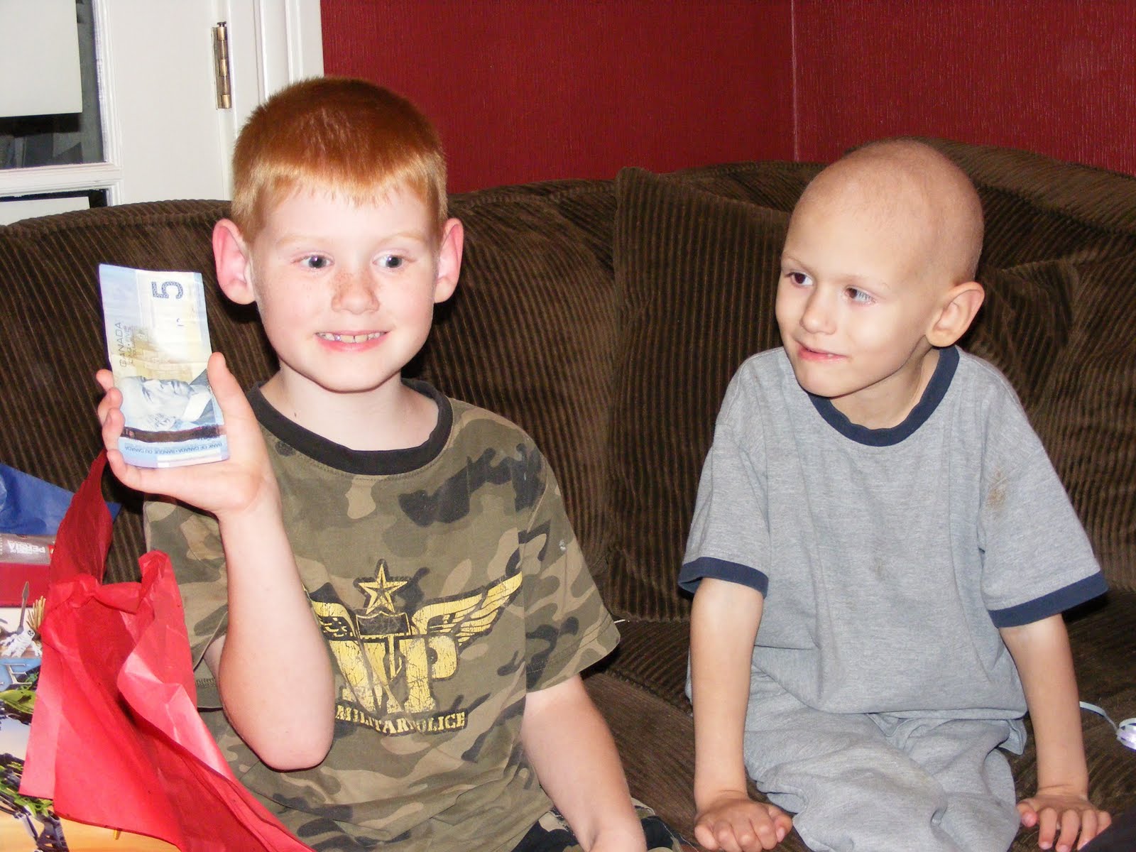 Ahh, money for his birthday. He is deciding to save his money and think about what he could use it for. Good decision. Daddy suggested Joshua could take him out to Tim Hortons for breakfast.