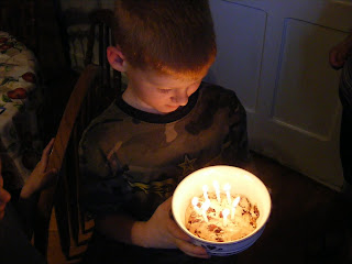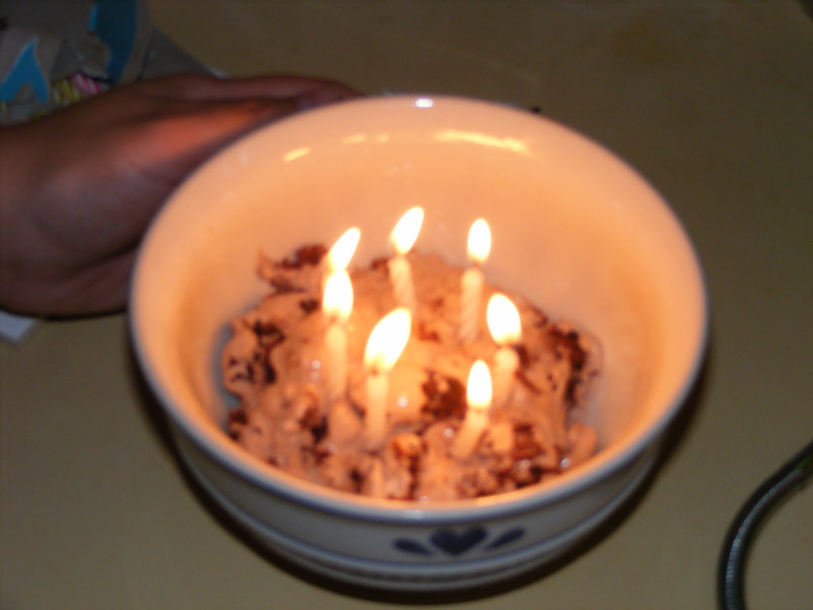 My flash did not go off but I love the glow on his face from ALL those candles!