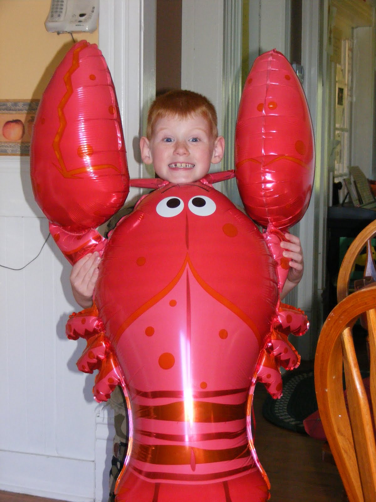 Happy Birthday Joshua! You are such a sweet and funny boy. You often have us all laughing we love you so much and are glad to have you in our family. I had to share one more picture of Joshua and the huge lobster balloon.