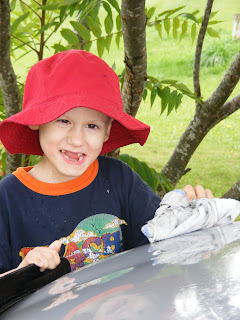 Before I had her changed and outside, Taliah had joined the boys about a 1/2 hour later the car looked great but I had a pile of wet clothes.