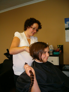 In the end it was a bit shorter then she bargained for but again she shrugged, it is only hair.